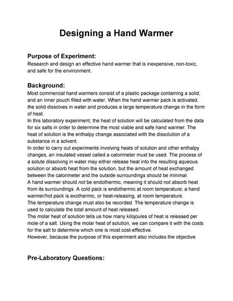 Read Online Hand Warmer Pre Lab Answers Reader online is a convenient and frugal way to read Hand Warmer Pre Lab Answers you love right from the comfort of your own home. Yes, there sites where you can get Reader "for free" but the ones listed below are clean from viruses and completely legal to use.
